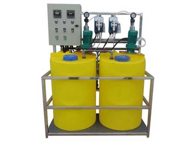 循环水加药装置是一种全新概念的化学水处理加药设备,广泛用于火力发电、石油、化工等行业锅炉水处理系统、原水处理系统以及废水处理系统。它是由计量泵、溶液箱、控制系统、管路及阀门等组件安装在同一底座上,实现药液溶配、计量投加功能。